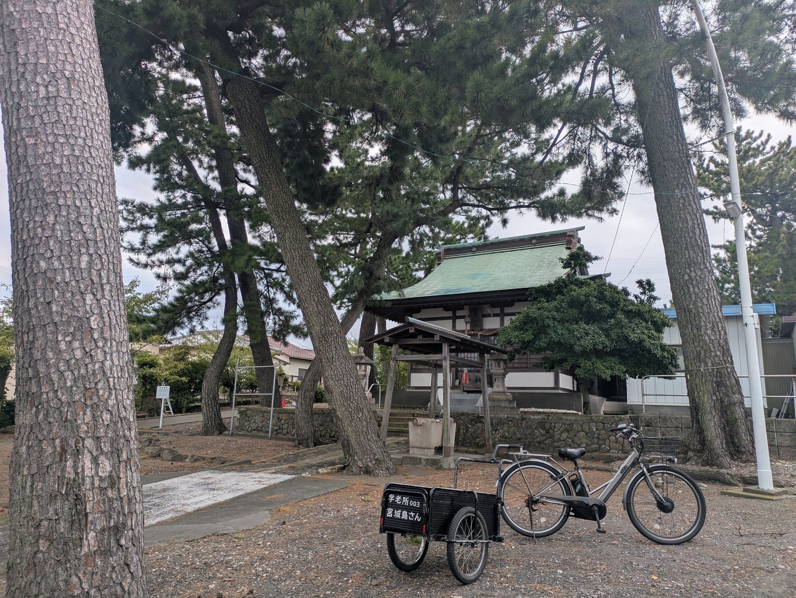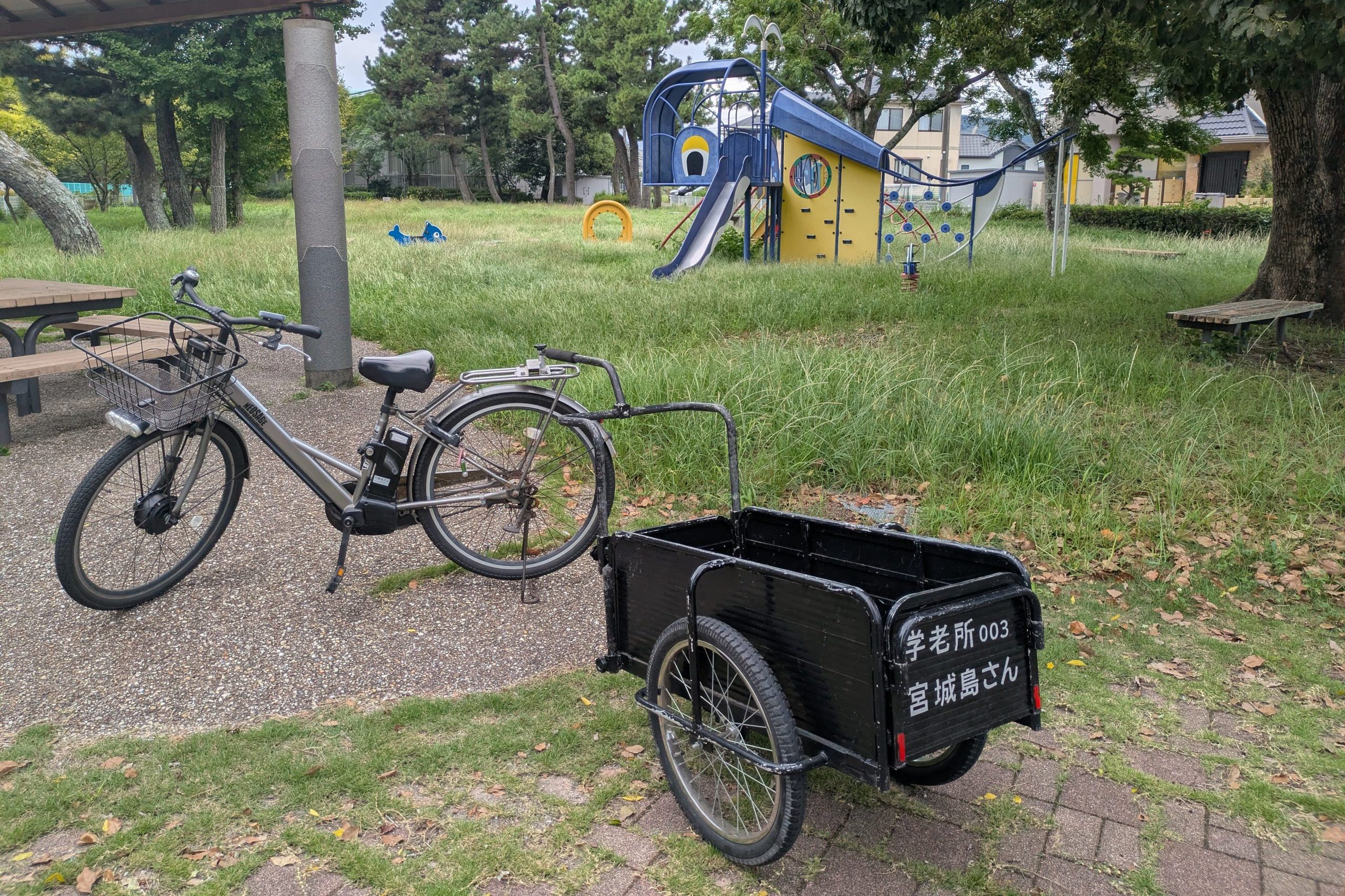 自転車のうしろにリアカーをつけて、地域の中へ出かけていく「移動式学老所」——それが学老所003宮城島さんです。