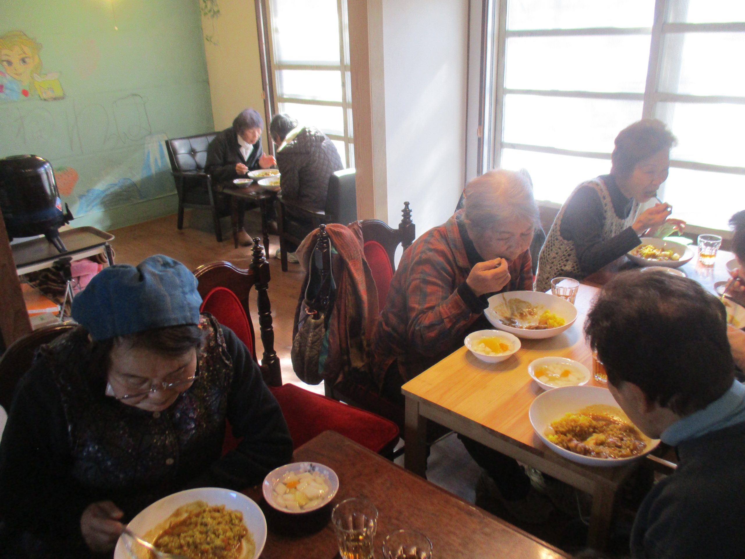 スパイスの効果で体がポカポカしてきたのか、食後のコーヒーブレイクでは、これから訪れる春を楽しみにする話題も。寒い日にもかかわらず、皆さんいつもよりゆっくりと腰を落ち着けて、おしゃべりを楽しまれている様子が印象的でした。